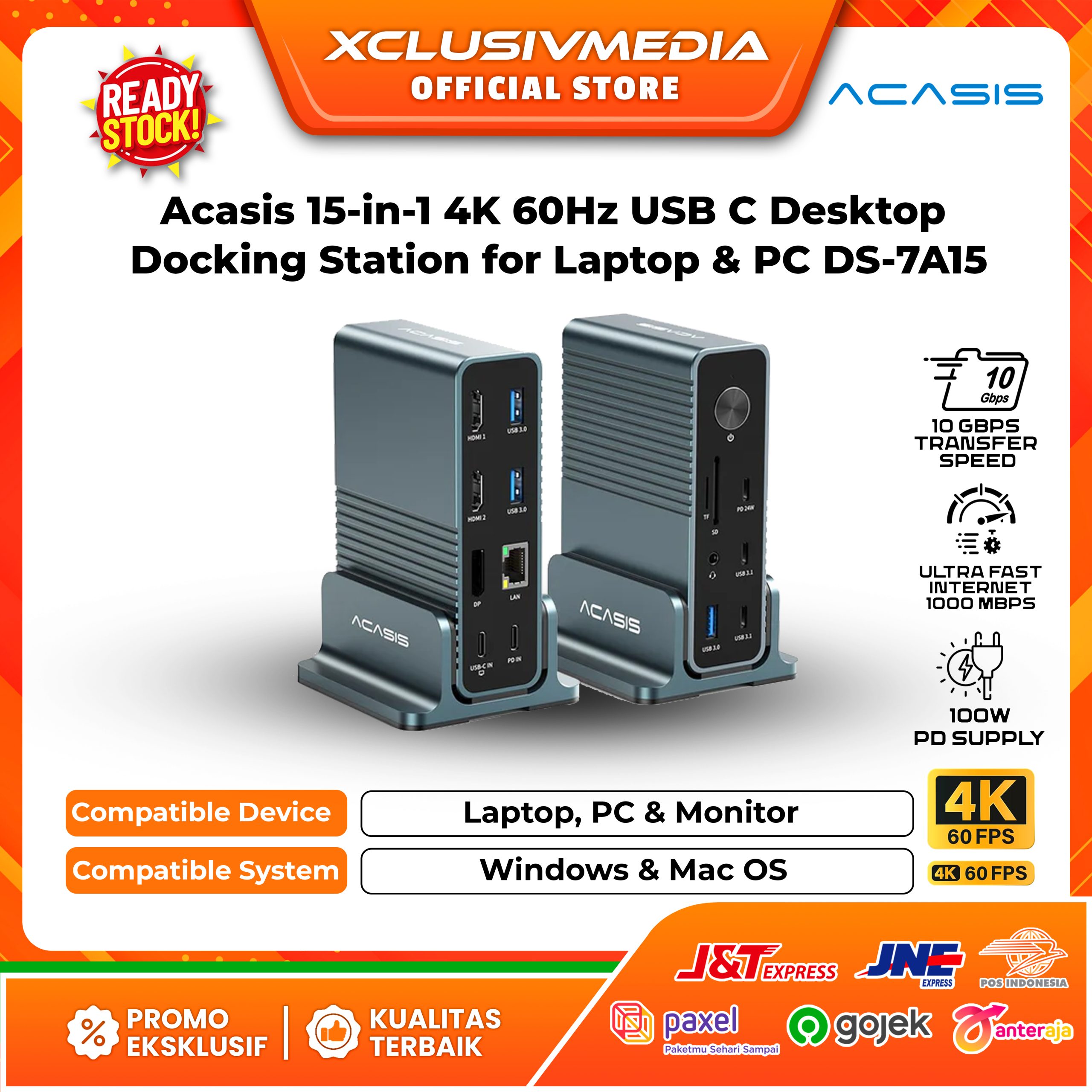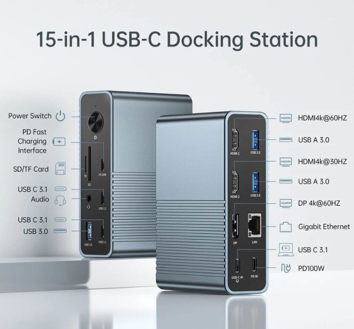 Acasis 15-in-1 USB C Desktop Docking Station for USB-C Laptop, 4K HDMI Display, DP 4K@60 HZ, 2*USB3.1 10GBPS, SD/TF, Audio, RJ45 for Mac&Windows, DS7A15