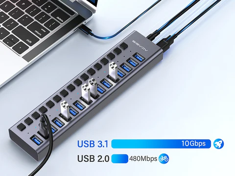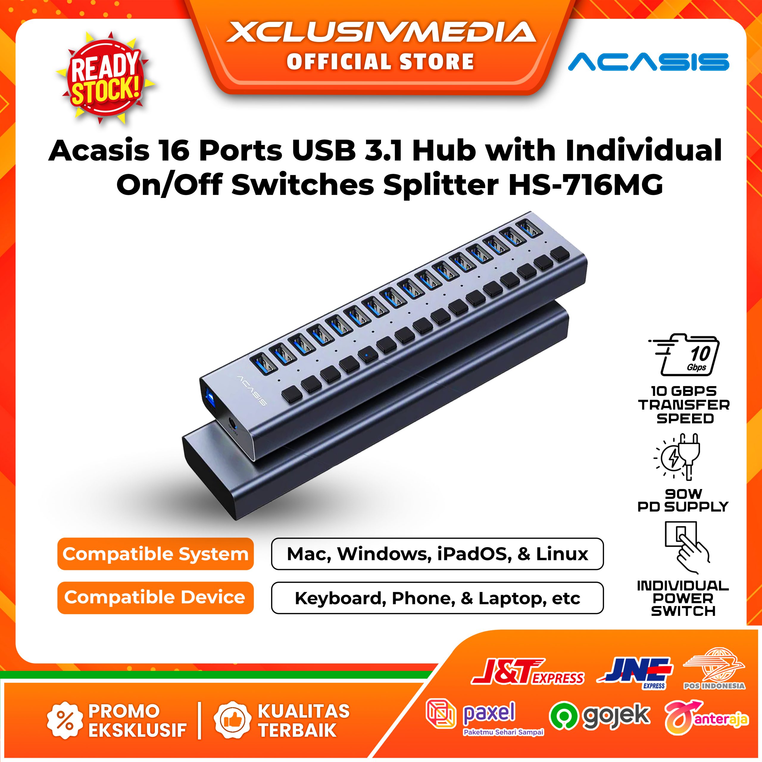 – The ACASIS Powered USB Hub brings a revolution to your workspace and gaming hub with its unwavering performance. Offering 16 USB 3.1 ports, individually controlled switches, and a data speed up to 10 Gbps, it is designed for those who value efficiency, control and speed.