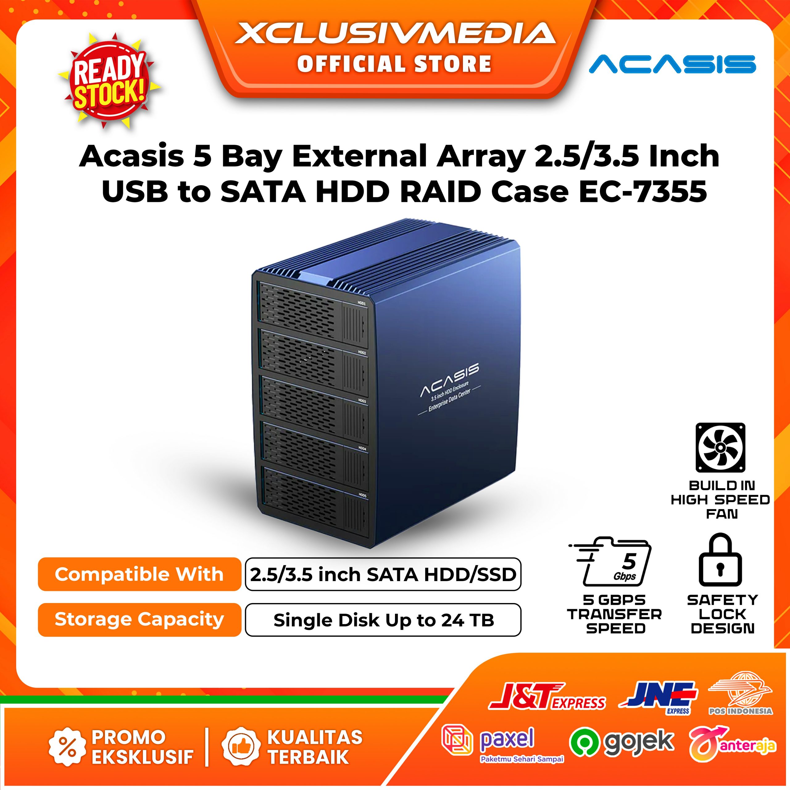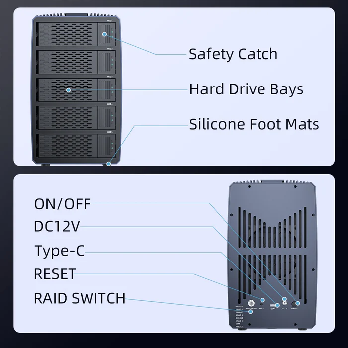 – Built in fan: Acasis 5-bay 2.5/3.5 SATA HDD Case is built in fan to help dissipate the heat while using.