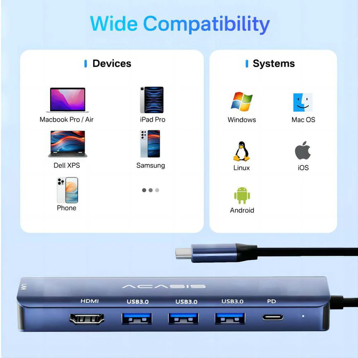 Acasis 6-in-1 Type-C 4K 60Hz Docking Station Multi Ports Converter DS-7HN6