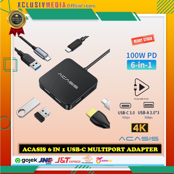 Acasis 6 in 1 USB C Hub Multiport Adapter with 4K HDMI, Power Delivery 100 W | 3 USB A 3.0 Port | 1 USB C Hub 3.0 for MacBook Pro/Air, AC-HC31