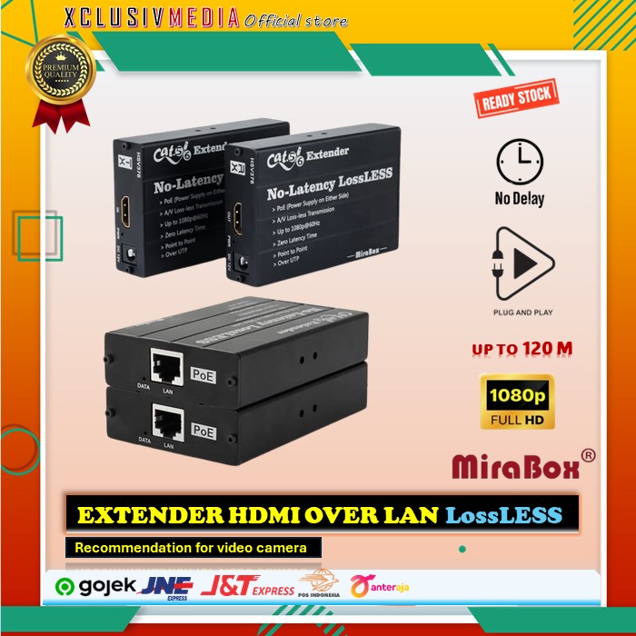 Extender HDMI ini cocok untuk kebutuhan extend kamera hingga 120M. Gambar tajam dan warna keluar. Resolusi output 1080P @60Hz serta tanpa delay / No Latency. Silahkan cek link video untuk membuktikan fitur no delay.