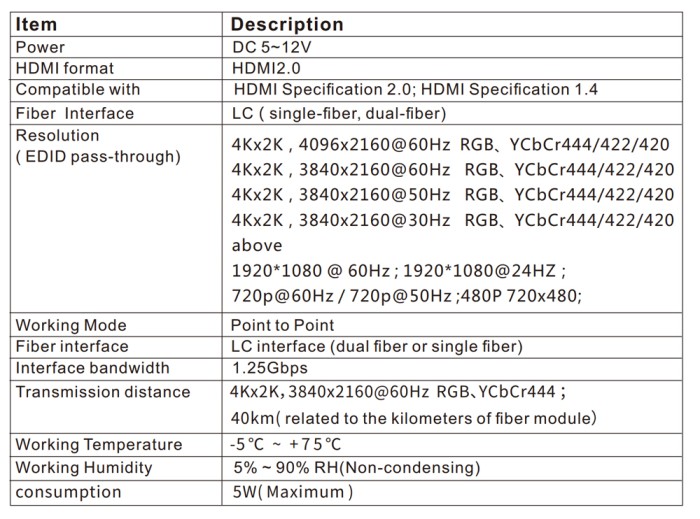 – Point-to-point long-distance transmission through 1.25G SFP fiber module; HDMI